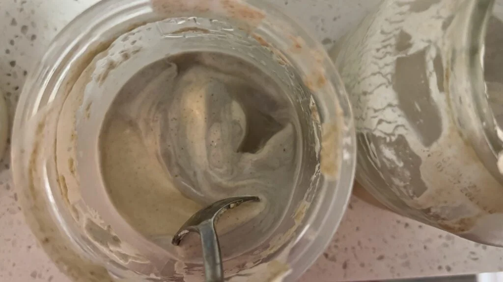 Once the liquid is gone, I scarped off the top layer that was under the hooch. My top layer was grey-ish color. By scraping the top layer, I was trying to get rid of any possible bacteria that might be still in a jar.
